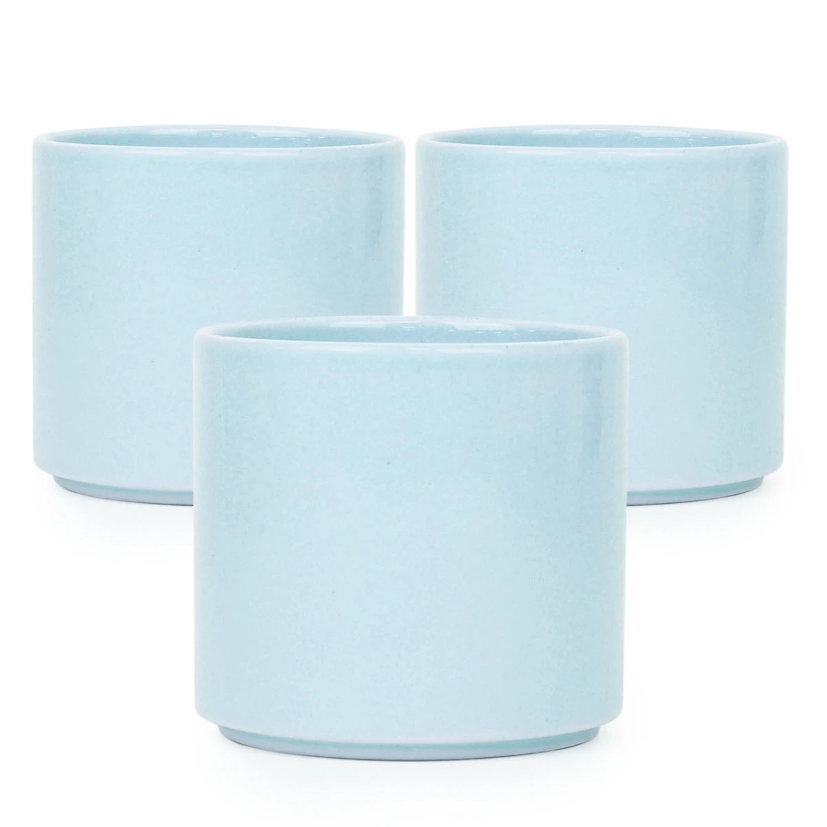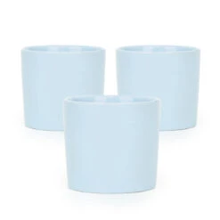 This set includes three gorgeous cylinder pots. These pots are constructed of high-quality pottery and hand-painted in shades of baby blue, coral, and white. They contain a drainage hole and may be utilized in a variety of settings. It will compliment your living or working area whether it is for your house, apartment, workplace, desktop, outdoor, or indoor.