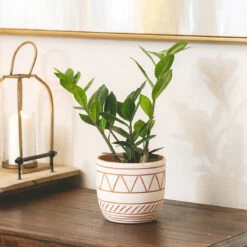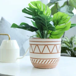 Elevate your living space with this pot’s unique and sophisticated design, featuring a stunning geometric carving pattern that exudes modernity and elegance. The clay and white color combination create a rustic, earthy vibe that can brighten up any home or office. Made from eco-friendly terracotta, this pot is not only visually pleasing but also excellent for plant health, providing natural regulation of moisture, air, and temperature to create a comfortable, nurturing environment for your green friends.