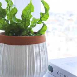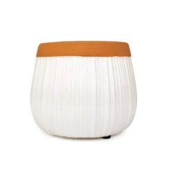 Enhance the beauty of your plants while elevating your living space with our 6-inch White Glazed Striped Ceramic Planter. This planter boasts a beautiful terracotta color rim, adding a touch of warmth and rustic charm to its overall aesthetic.