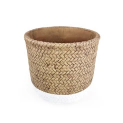 Designed specifically for nurturing herbs, houseplants, and succulents, this cement planter offers the perfect environment for your green companions to flourish. Crafted from durable cement pottery, it combines sturdiness with a visually appealing textural design. The neutral color palette of white and nature reed complements a wide range of home decor styles, including farmhouse, rustic, bohemian, coastal, contemporary, and transitional.