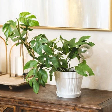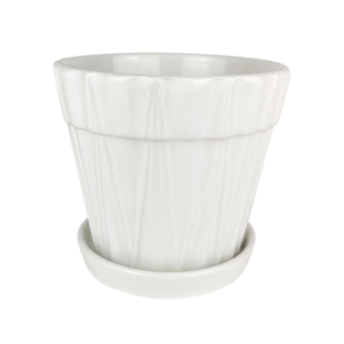 This white decorative pot is a wonderful choice for any type of houseplant. It comes with a saucer and a drainage hole, making watering your plant easier and less messy. Simple and elegant with a sleek design, this stylish pot can accent various decor styles in both indoor living spaces and outdoor patios.Â