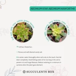 Aeonium Kiwi – This listing is for a Aeonium Kiwi in a 2 inch or 4 inch size. Some have branches with cute little babies. They vary in color depending on their location in our greenhouse. Some will be more yellow, some greener.