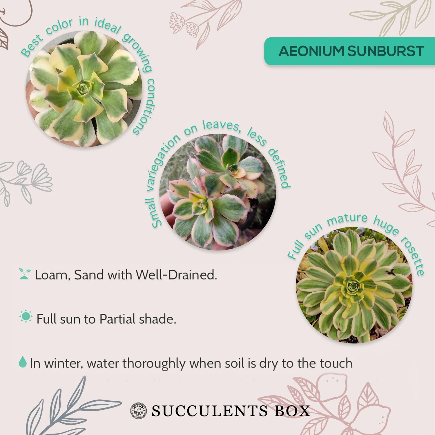 You can propagate Aeonium Sunburst from leaf cuttings taken when the plant is in its active period.