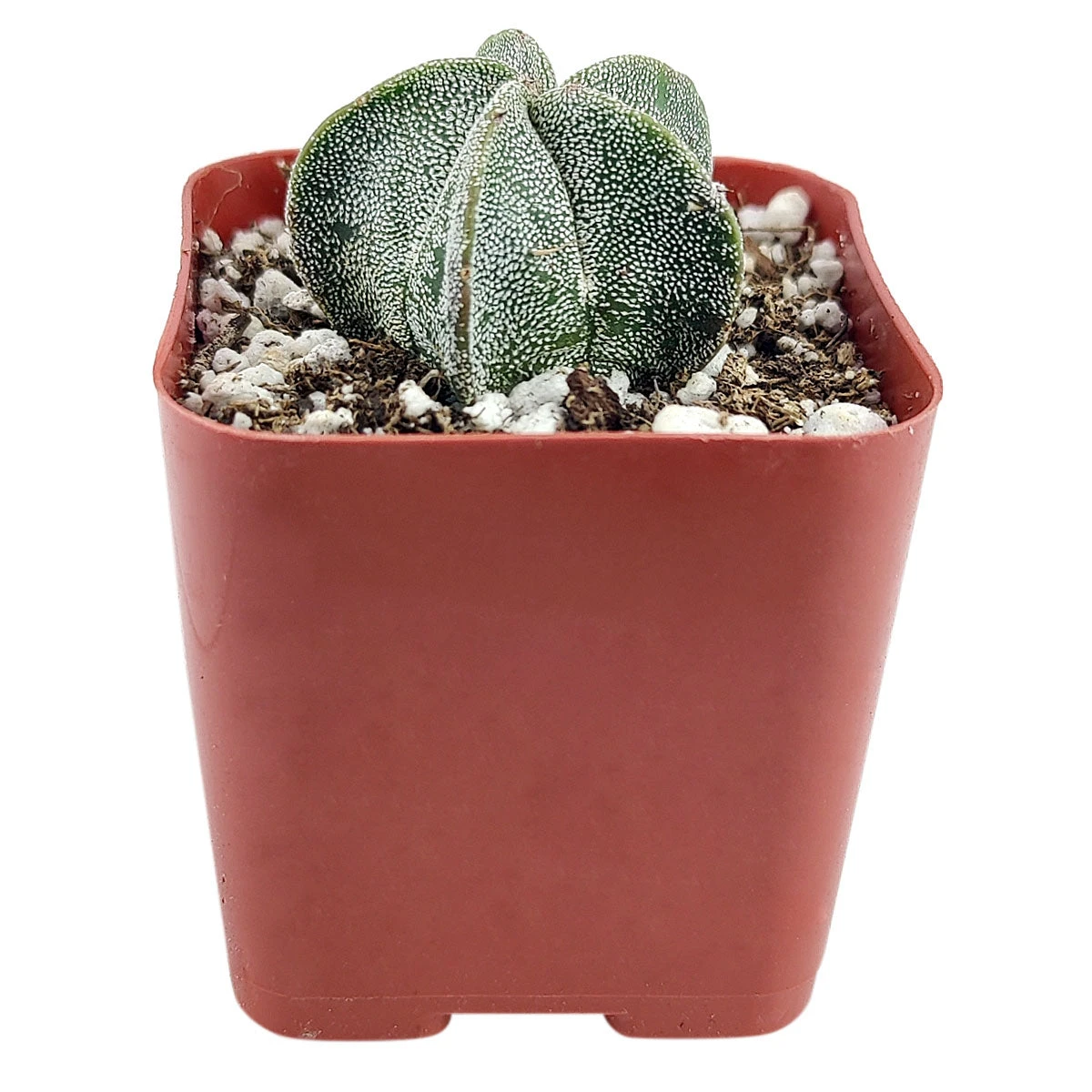Astrophytum Myriostigma is a rare star cactus that has no spikes but white hairy scales that give it a characteristic chalk-white or silvery-grey appearance. It often has 5 ribs, but can grow up to 8 ribs with age. Astrophytum Myriostigma can grow up to 8 inches (20 cm) in diameter. This cactus variety is loved by people for its easygoing nature. It makes a superb addition to your indoor as well as outdoor spaces. However, to flaunt it at your place, place it on windowsills, bookshelves, or desks.