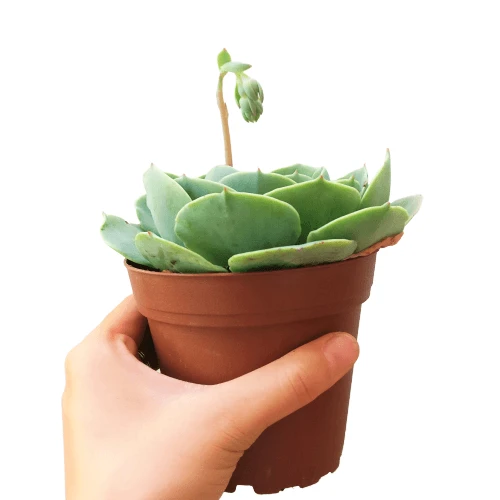 If grown under ideal condition, the tight rosettes can become as large as a dinner plate (4-6 in. wide), and can produce multiple offsets that hug the mother rosette at the base. Besides its attractive appearance, Echeveria imbricata ‘Blue Rose’ is also very popular thanks to its hardiness. It can tolerate temperature as low as 25 F (-3 C).