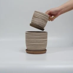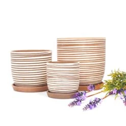 A fresh take on the timeless stripe pattern! This pot combines classic and modernity and gives the vintage stripe design a fresh and contemporary feel. It features a familiar yet revitalized carving pattern in white and rustic clay that breathes life into any home or office decor. Crafted from eco-friendly, porous, and breathable terracotta, this pot is perfect for promoting better plant health.