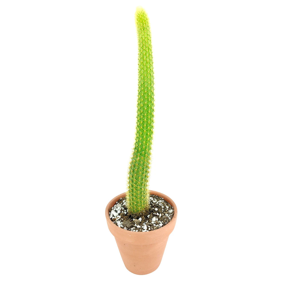 Cleistocactus Winteri Golden Rat Tail is a branching cactus with cylindrical trailing or pendant stems covered with many short golden spines. The stems grow up to 40 inches (1 m) long and up to 1 inch (2.5 cm) in diameter. Very easy to cultivate, making this species a great choice for novice gardeners. Well suited for hanging baskets.