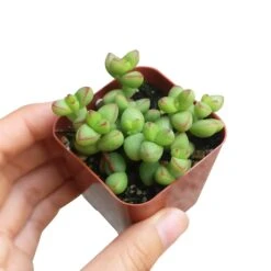 Crassula Brevifolia, native to South Africa, has thick, fleshy, triangulated green leaves with a rough, fuzzy texture borne on woody branches.