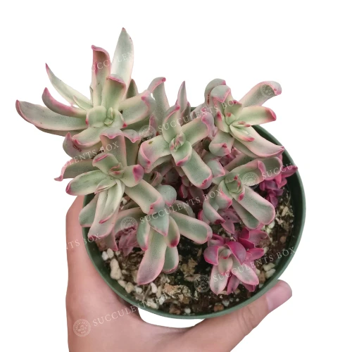 Crassula Rubricaulis Candy Cane is a rare succulent with beautiful green and white variegation. It bushes rosy red in full sun like a candy cane.