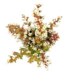 Thyrsiflora ‘Pagoda Village’ produces tiny white or pink flowers from mid-summer to early fall.
