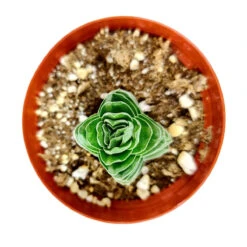 Crassula pyramidalis ‘Buddha’s Temple’ is a hybrid results from the cross between Crassula pyramidalis and Crassula perfoliata var. minor (formerly known as Crassula falcata). It’s a rare succulent that looks spectacular with stacked and folded leaves at the edges that form a square-shaped column. The columns can reach a height of 6 inches (15 cm) and a width of 1.6 inches (4 cm), with branches growing from the sides. Leaves are flat, heart-shaped, silvery-grey to grayish-green, and covered with a powdery coating. This succulent is edgy and unusual, making it a perfect addition to any planter or rock garden.