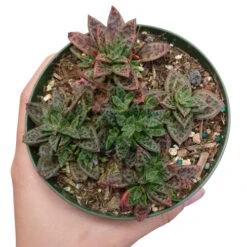 Crassula Picturata Tiger Jade is a rare succulent that has a compact growing habit. Its gorgeous rosettes are made of dark green leaves with black spots and purple undersides as well as hairy margins. These leaves can turn reddish when stressed.