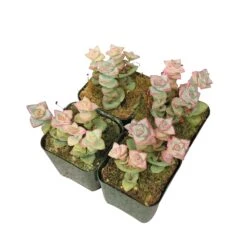 Crassula Tom Thumb is a cute miniature succulent that grow trailing branches, making them a great addition for hanging planters. It has tiny densely packed triangular leaves that can develop red edges with enough sun exposure.