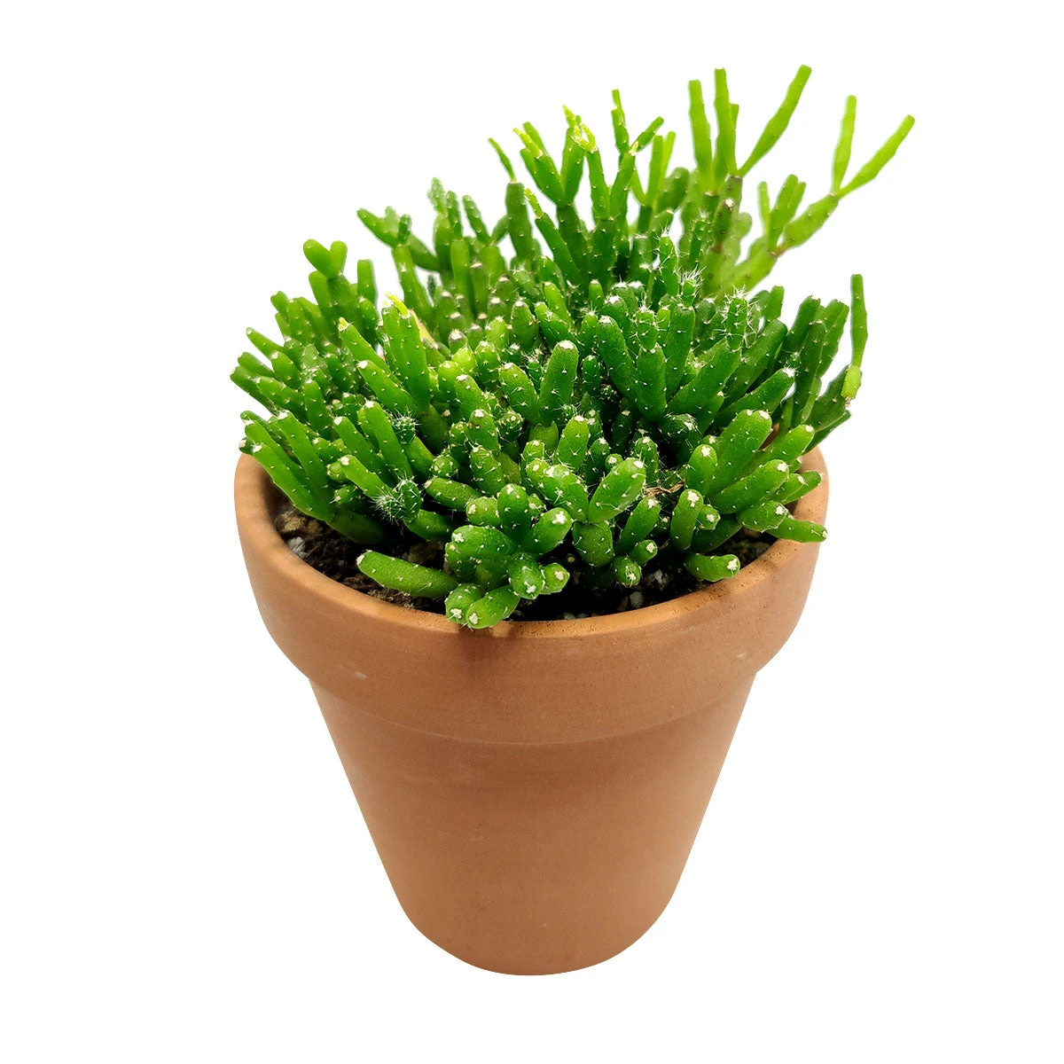 Hatiora salicornioides is a slender, erect, arching or somewhat pendent, bushy, cactus, up to 2 feet (60 cm) tall.