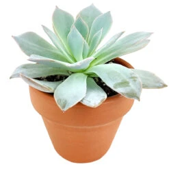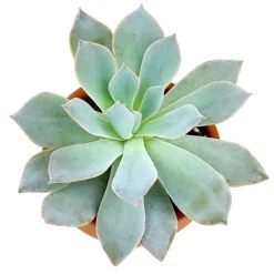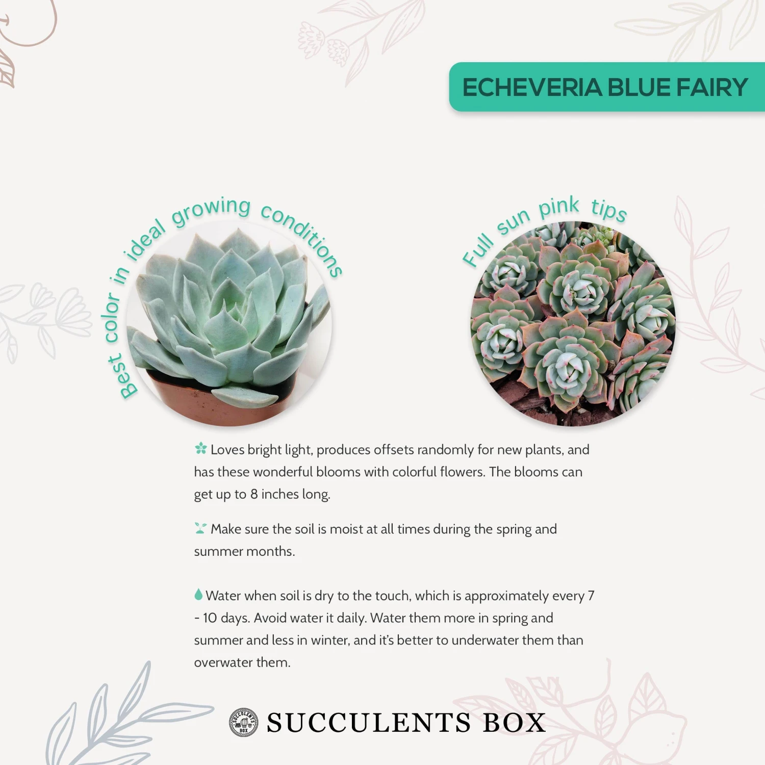 The lovely Echeveria Blue Fairy or Blue Bird is one of best selling succulents, and with good reason. This rosette has blue-green foliage, and sometimes the pointed tips have a reddish color.