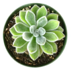 Echeveria ‘Doris Taylor’ or Mexican Firecracker is a hybrid between Echeveria setosa and Echeveria pulvinata. Also known as “Woolly Rose”, Echeveria ‘Doris Taylor’ forms rosettes of fleshy green leaves covered in fuzzy white hair. The green leaves might turn red at the edge in full sun.