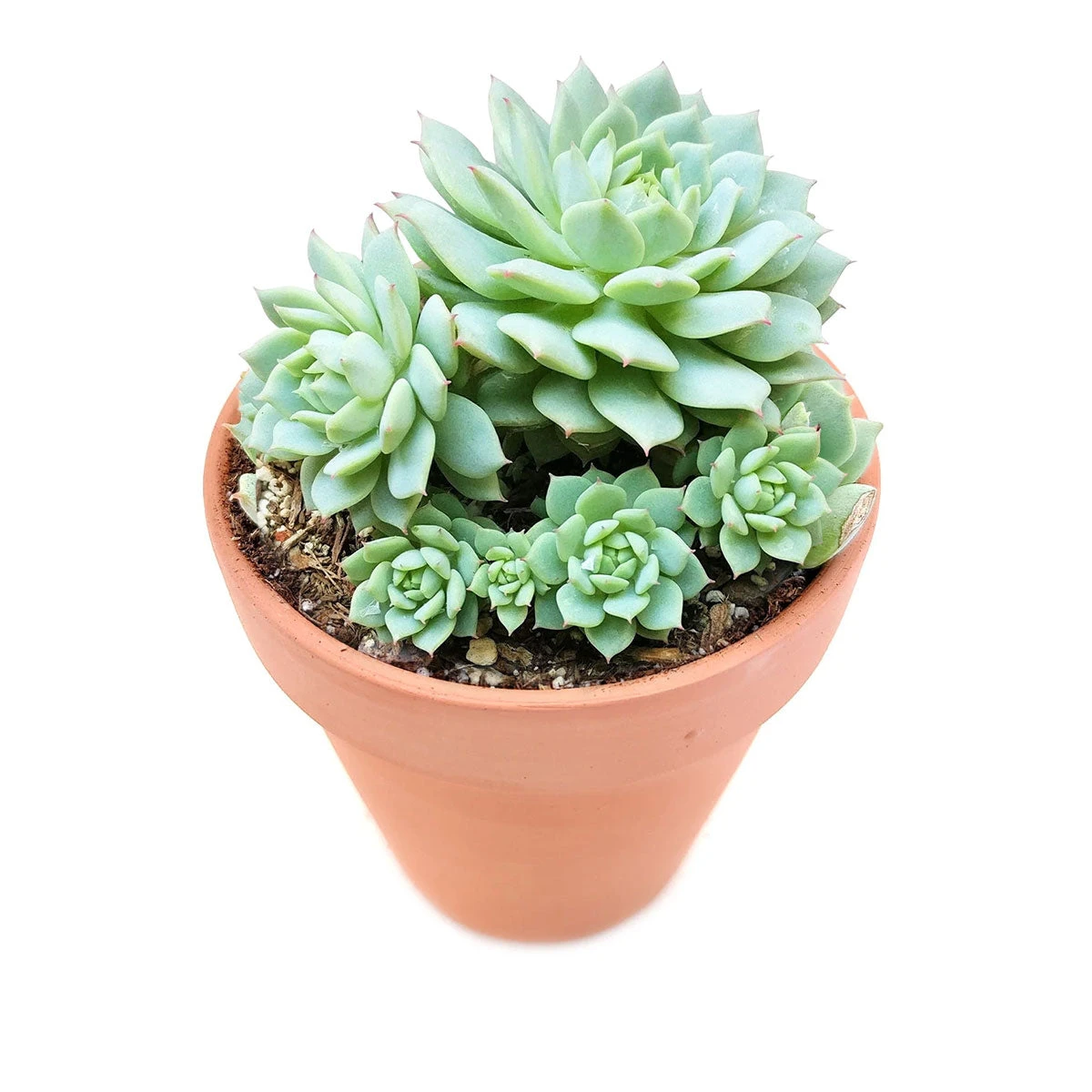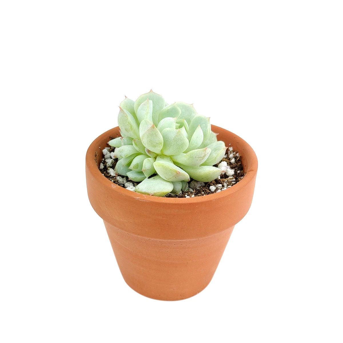 This listing is for an Echeveria Derenbergii “Painted Lady” growing in a 2/4/6-inch size. Echeveria Derenbergii is a lovely succulent that grows offsets freely, forming clumps of a tight rosette of frosted, pointed, and fleshy leaves. The leaves are pale green with pink tips. It is native to Mexico.