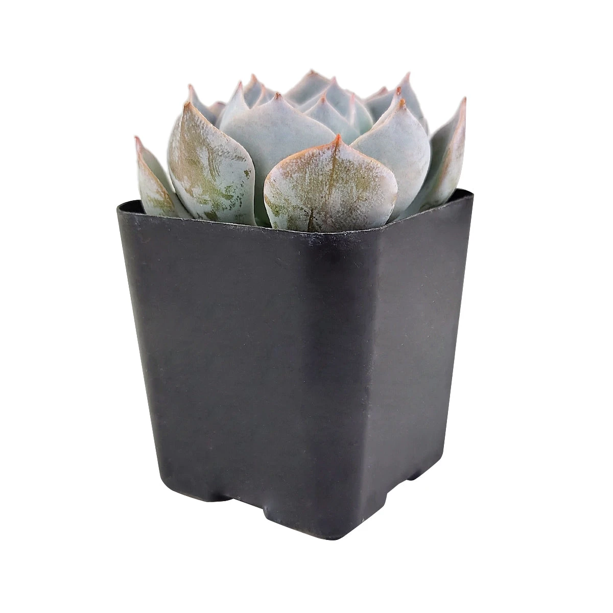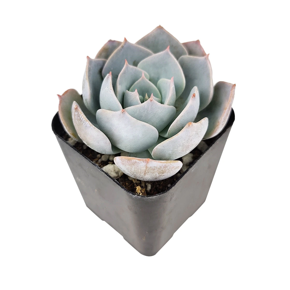 Echeveria simulans f/ Rayones typically forms compact rosettes with a diameter of several inches, but the exact size can vary based on factors like growing conditions, age, and care. On average, the rosettes can reach a moderate size of 5-6”, making them suitable for tabletop arrangements and small spaces.