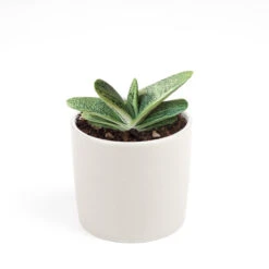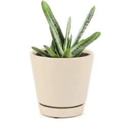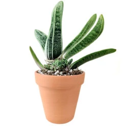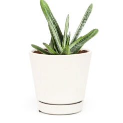Gasteria is one of Aloe relatives. Gasteria “Little Warty” has thick, stiff, dark green leaves marked with white spots and pale silvery-green stripes. The leaves has an interesting shiny plastic look and feel.