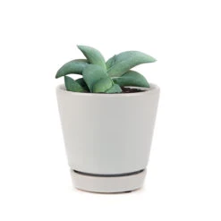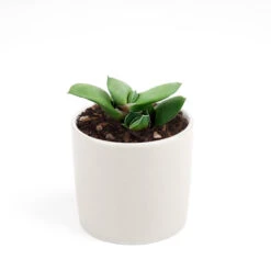 Gasteria is one of Aloe’s relatives. Gasteria Glomerata (Ox Tongue) is a dwarf species of Gasteria that has long rounded leaves shaped like ox/cow tongues. The leaves are thick, gray-green, matte, stiff, a bit rough and slightly curve backward. It’s slow growing and low maintenance, making it a good houseplant.