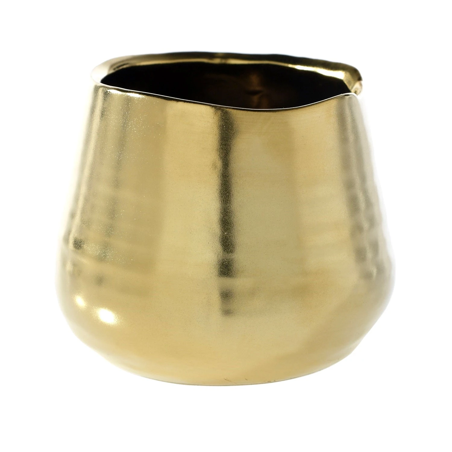 These gold finish clay pots have a subtle matte finish and rustic style to use for centerpieces and modern home decor.Ā (plantĀ andĀ gravelĀ not included)