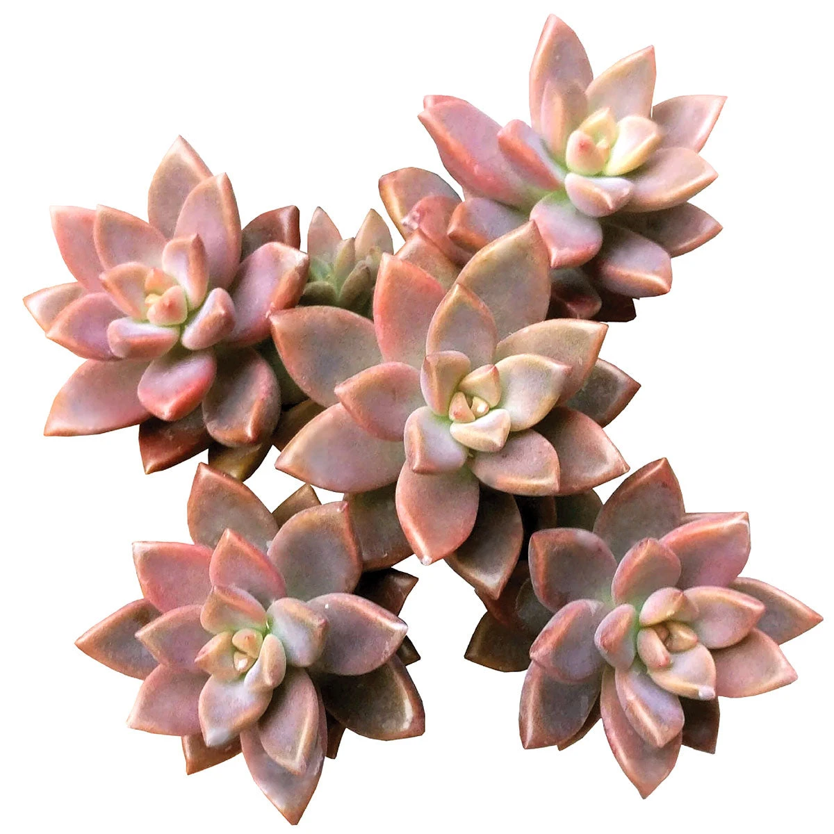 Graptosedum ‘California Sunset’ is a fun succulent with rosy orange leaves forming small rosettes similar to those of Echeverias. The stems tend to grow long and leggy. New growth has a grayish-green color but the rosy orange hue will be intensified by drought and cool winter temperatures.