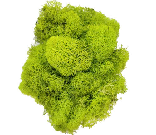 Reindeer moss is preserved to use in many home and office decor displays. Lovely soft and spongy texture, ideal for covering soil and dressing potted plants. The moss looks natural and has endless possibilities of application in the interior or making a present. No water needed.Â