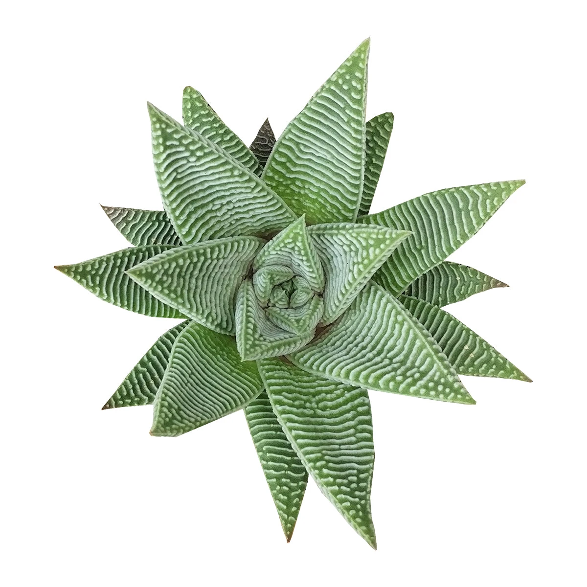 Haworthia limifolia var. striata is one of the most beautiful and popular Haworthias. It is very rare and highly sought after. It has thick silvery green leaves with raised white bands.