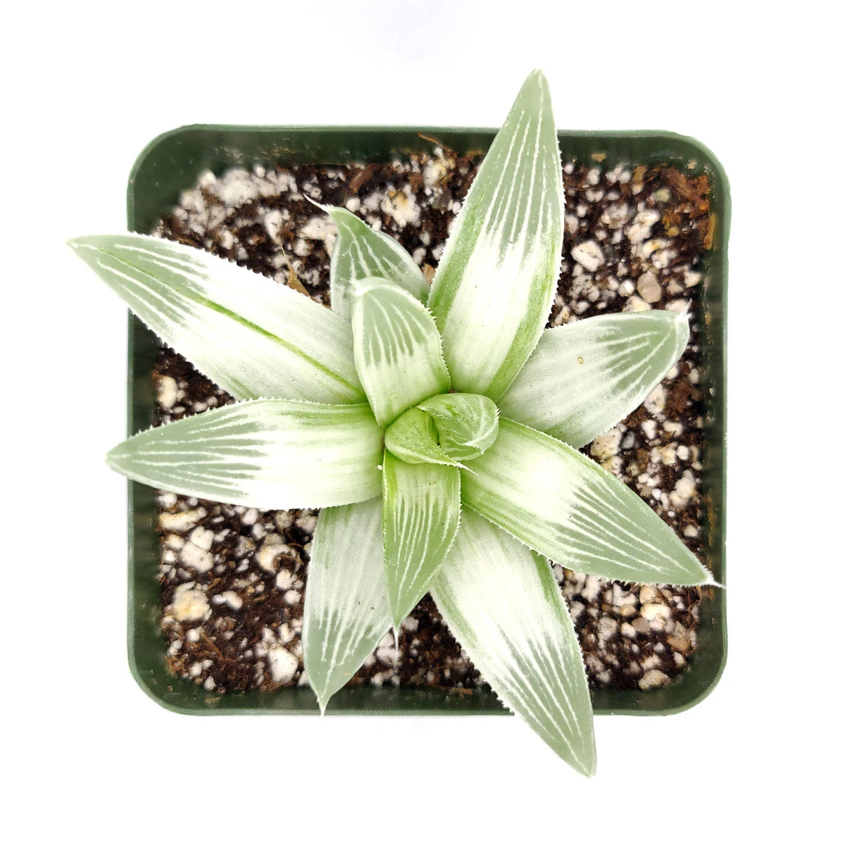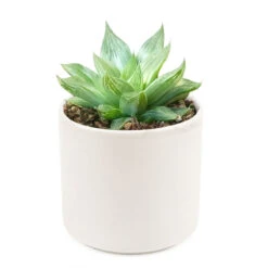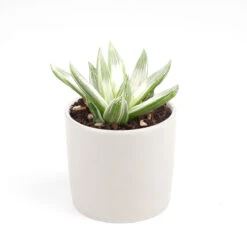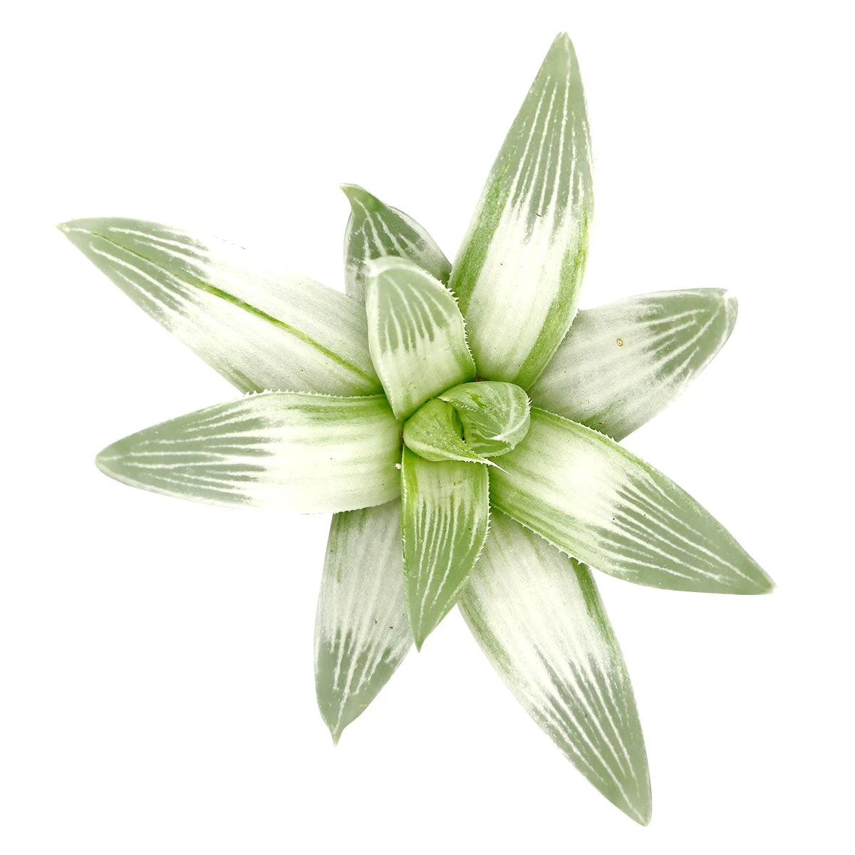 Haworthia Retusa White Ghost is a rare, variegated succulent with almost white leaves. It is a stemless, evergreen, rosette-forming succulent with dense rosette up to 3.2 inches (8 cm) in diameter. The leaves are up to 2 inches (5 cm) long, pale green with whitish variegation and veins along the upper surfaces. The flowers are small with green lines and a green throat.