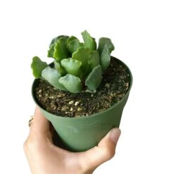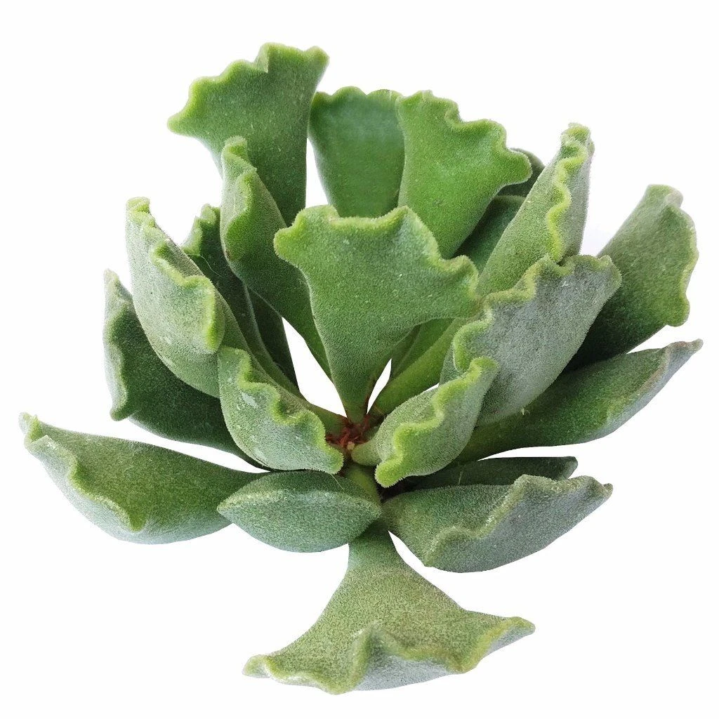Adromischus Cristatus, also called Key Lime Pie, is a cute succulent with chubby dark green leaves that have wavy tips like those of clam shells. The leaves are arranged to form a loose rossette.