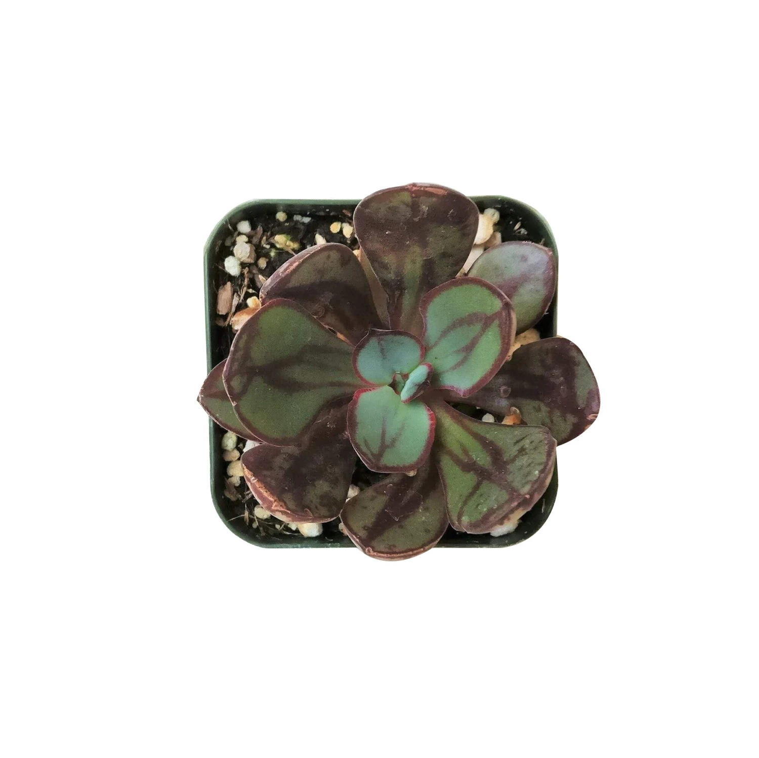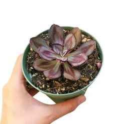 Echeveria Nodulosa or Echeveria Benitsukasa is a stunning species of Echeveria with deep wine color marking on the margins and in the center of the olive green leaves.