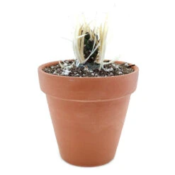 Tephrocactus articulatus var. papyracanthus is a very rare succulent with long, flat and pointy but soft spines that has the texture similar to that of paper. The spines give it the fun nickname “Paper Spine Cactus”. When the spines get long enough, they tend to curl and look like ribbon.