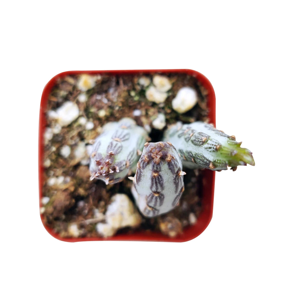 Kleinia Stapeliiformis, also called Pickle Plant, or Candle Stick Plant, is a rare succulent with tiny scale leaves and pencil-like cylindrical stems. The stems are brittle and succulent, with soft spines along the sides.