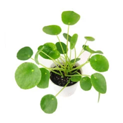 Pilea Peperomioides, or Chinese Money Plant, is a rare houseplant with coin-shaped green leaves. The leaves have long, thin leaf stems growing around the trunk of the plant. This unique foliage makes Pilea Peperomioides a bold and precious addition to your houseplant collection.