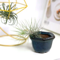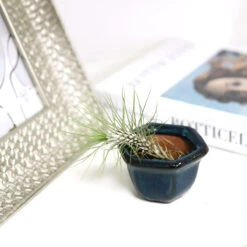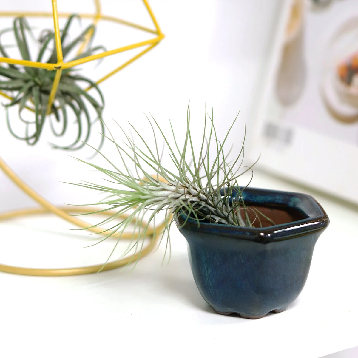 This retro green hexagon glazed clay mini air plant holder is a timeless piece that will add a touch of elegance and vintage charm to your home decor. The hexagonal shape is both stylish and functional, providing plenty of space for your air plant to grow and thrive. The glazed clay finish is durable and easy to care for, and the small size makes it perfect for display on a bookshelf, windowsill, or coffee table.Â