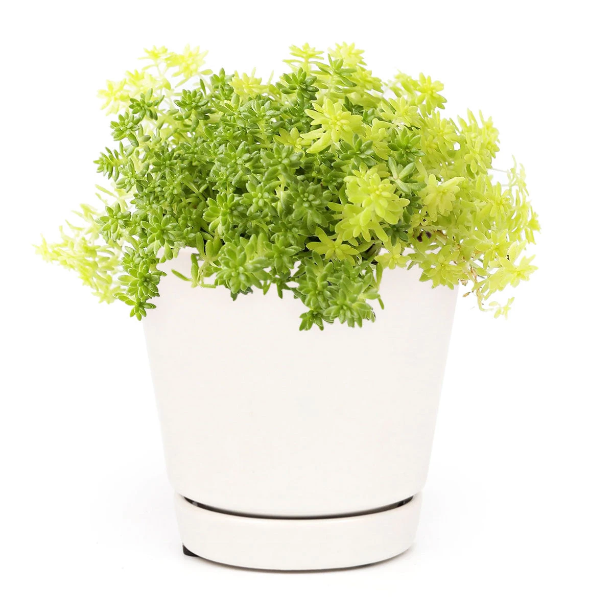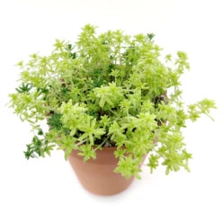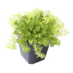 Sedum Golden Moss (Sedum de oro) or Tokyo Sun is an evergreen perennial creeping groundcover that is perfect for rock gardens. This plant also looks stunning in hanging baskets. Its leaves are tiny, needle-like and lime green in color and they spread freely, forming a beautiful mat.