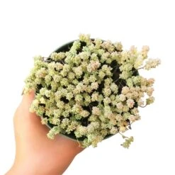 Suzie Q English Stonecrop is a very dainty looking sedum with miniature variegated leaves. Cold temperatures bring out the red coloring which gives way to cream foliage in warmer months. Also known as Suzy Q, this sedum is ideal for miniature fairy gardens.