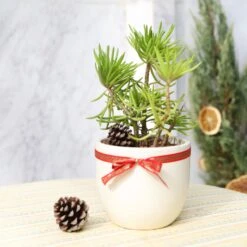 Senecio Cylindricus is a low growing, glabrous, pruinose, evergreen succulent shrub to shrub up to 24 inches (60 cm) tall and spreading up to 5 feet (1.5m) wide. It has semi-prostrate stems that turn upright and leaves are grey-green, tubular, slender, slightly upcurved and crowded at the stems tips.