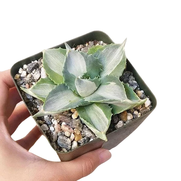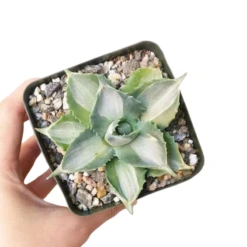 Rare Variegated Agave Butterfly Isthmensis forms rosettes up to 4 inches (10 cm) tall and wide with grayish green and cream colored fleshy leaves. This slow-growing plant produces pups from the leaf axils instead of via underground runners.