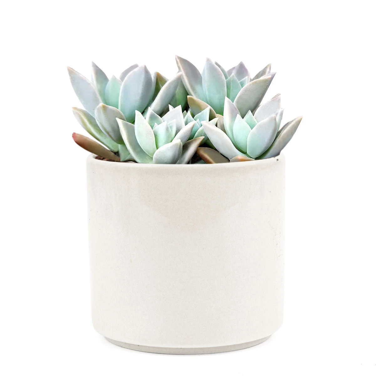 This listing features our lovely rooted Variegated Graptopetalum paraguayense. This rare beauty is native to Mexico, has blue-gray leaves with some light purple hue and creamy yellow-pink variegation. Variegated Ghost Plant produces white star-shaped flowers with lovely red patches. It is a fast-growing succulent that is perfect for rock gardens or hanging baskets. It is frost tolerant, but you still need to give protection to prevent damage.