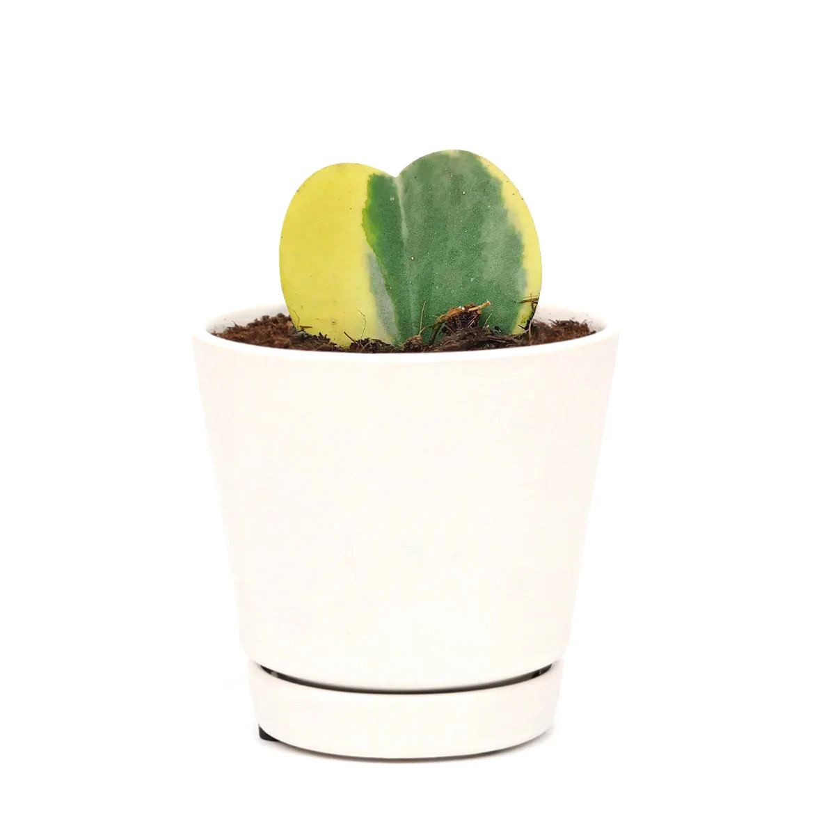 Ā Variegated Hoya Kerrii Heart is the rare variegated form of Hoya Kerrii Heart or Sweetheart/Valentine Hoya. This is a tropical, semi-succulent, unique houseplant with plump heart-shaped leaves. Usually sold as a single-leaf, this adorable little houseplant doesn’t need much care and always looks beautiful. Variegated Kerrii Heart is an evergreenĀ heart with stunning creamy yellow and white variegation that lights up your space all year round!Ā