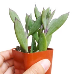 Its stems are thick, erect, and purplish green. Senecio crassissimus has leaves that are long, flat, waxy and grey-green in color with vibrant purple edges.