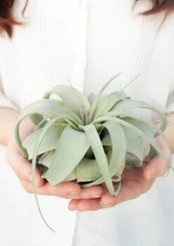 Tillandsia Xerographica is a beautiful air plant with long silvery green leaves that gets thinner at the tips. As it matures, the leaves begin to curl at the tips and eventually curl up into a loose ball. These dense trichomes on its leaves protect the plant from the sun and facilitating the moisture-absorbing process.