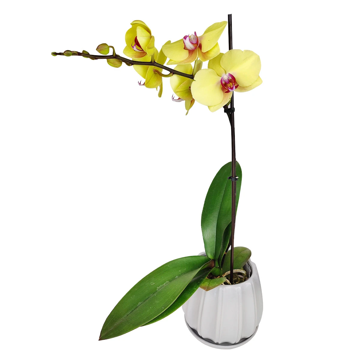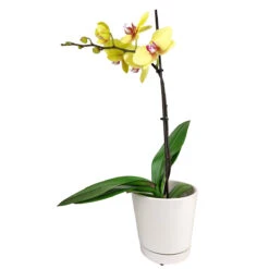 Hailing from the tropical regions of Asia and Australia, Yellow Phalaenopsis Orchid graces indoor spaces with its exotic charm. Renowned as Moth Orchids, these plants stand out for their elegant and intricate blooms, resembling delicate moths in flight. The captivating allure of these flowers adds a touch of elegance to any setting.